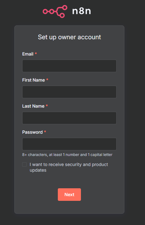 Oitavo passo: Processo finalizado, agora você pode realizar o cadastramento da sua conta no N8N e ter acesso aos workflows ilimitados.