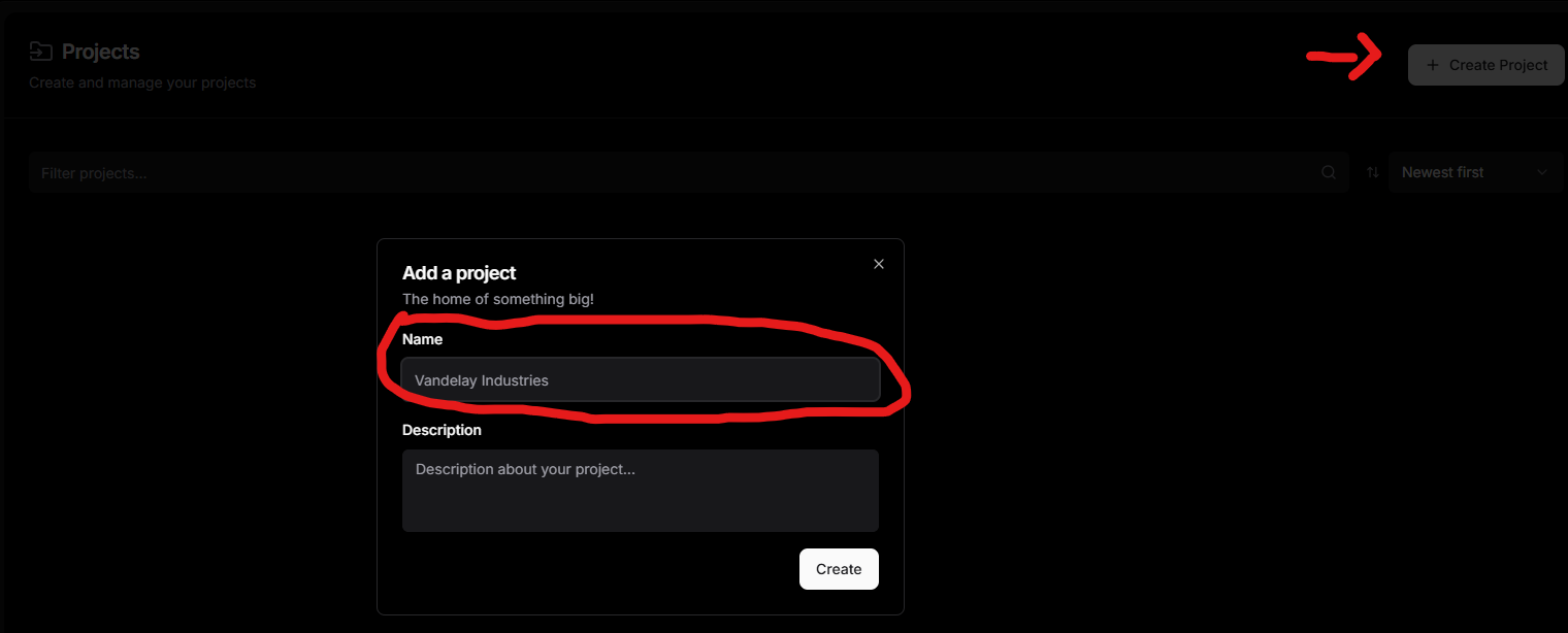 Segundo passo: Dentro do DokPloy clique em Creat Project (Criar Projeto). Preencha o campo dando um nome para o seu projeto, por exemplo: N8NTESTE