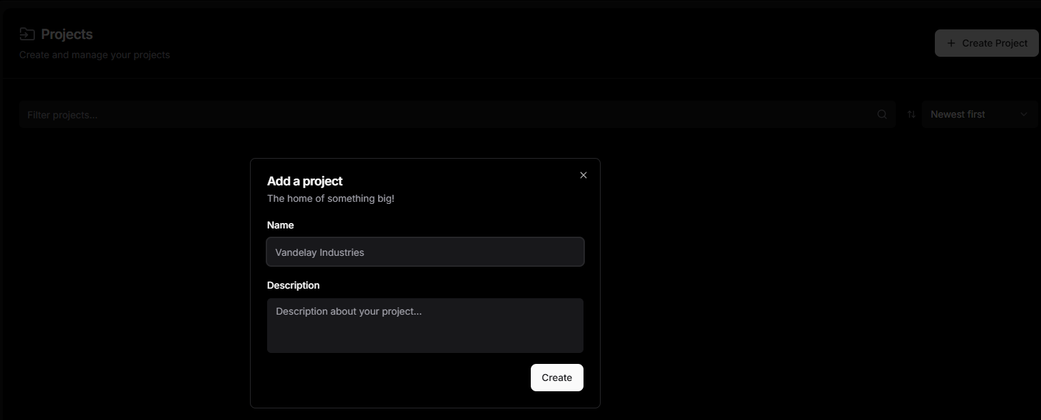 Primieiro passo: Dentro do DokPloy vá até a opção de Create Projetc, dê um nome ao projeto e clique em Create.