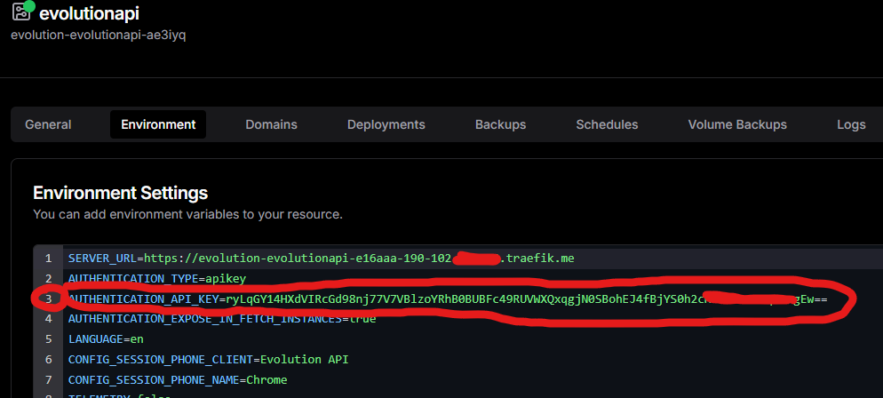 Para isso, acesse a opção de Environment dentro do docker na sua evolution api, copie e cole na tela de login da evolution.